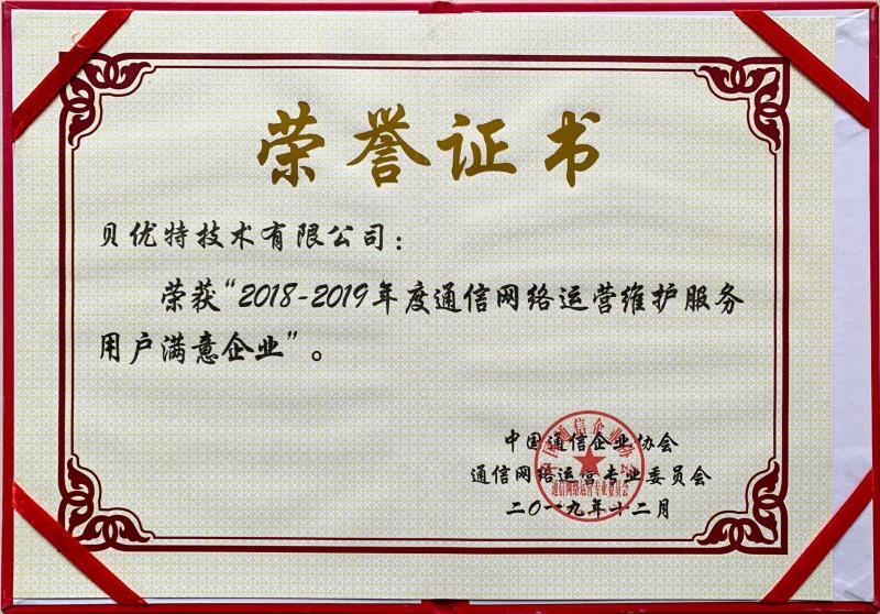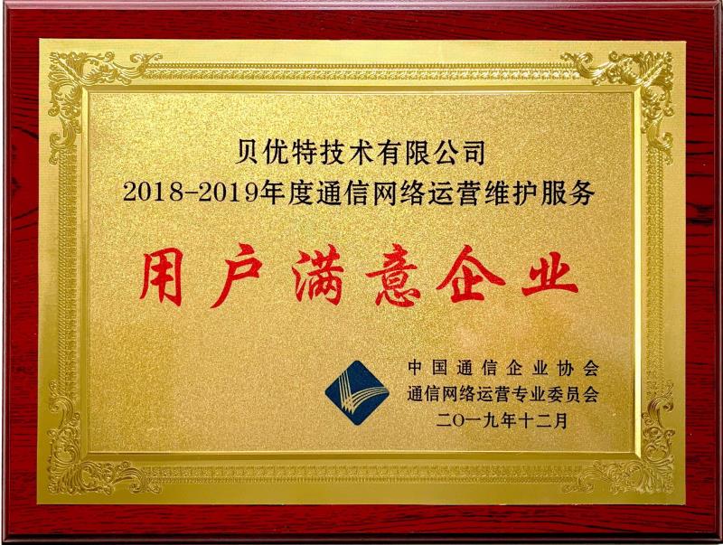 在這辭舊迎新之際,公司喜獲由中國通信企業(yè)協(xié)會、中國通信網(wǎng)絡運營專業(yè)委員會頒發(fā)的”2018-2019通信網(wǎng)絡運營維護服務用戶滿意企業(yè)“的榮譽獎牌及證書。